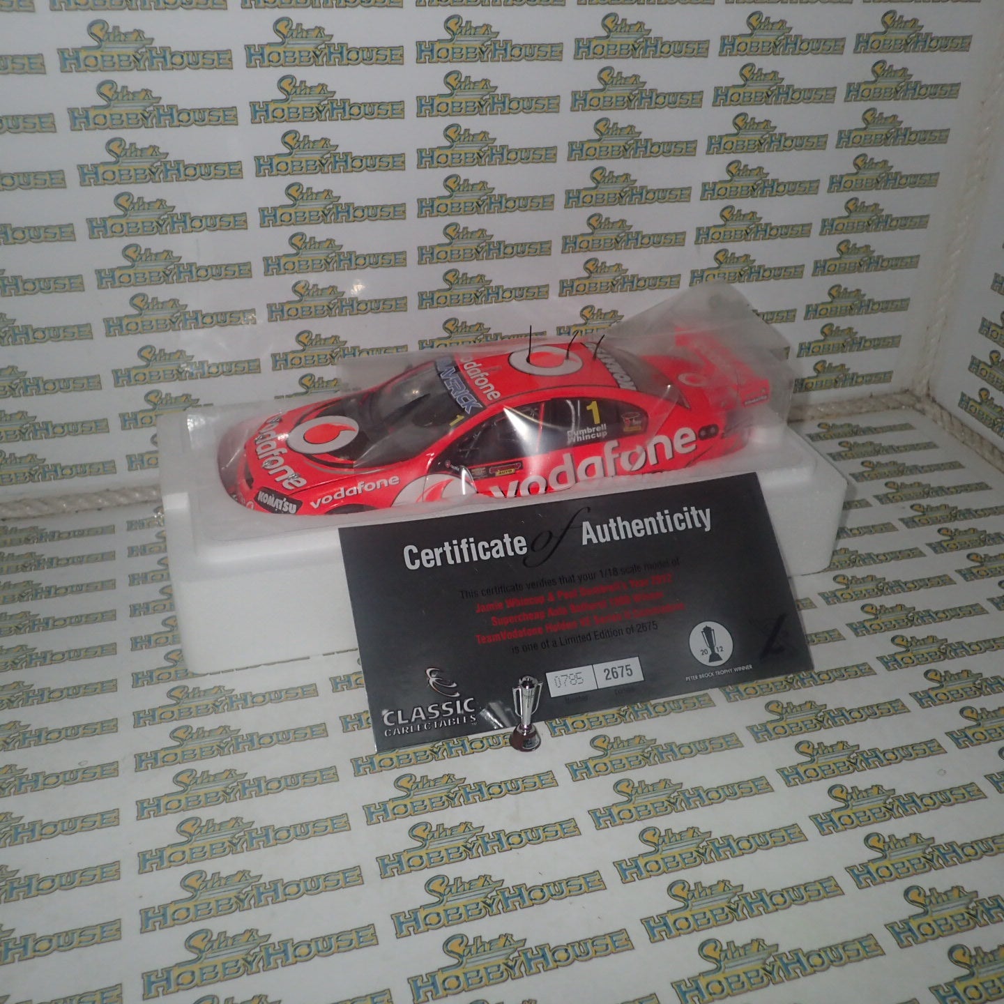 Classic Carlectables 1/18 Scale die cast replica of Jamie Whincup and Paul Dumbrell’s 2012 Supercheap Auto Bathurst 1000 winning Team Vodafone Holden VE Series II Commodore #1