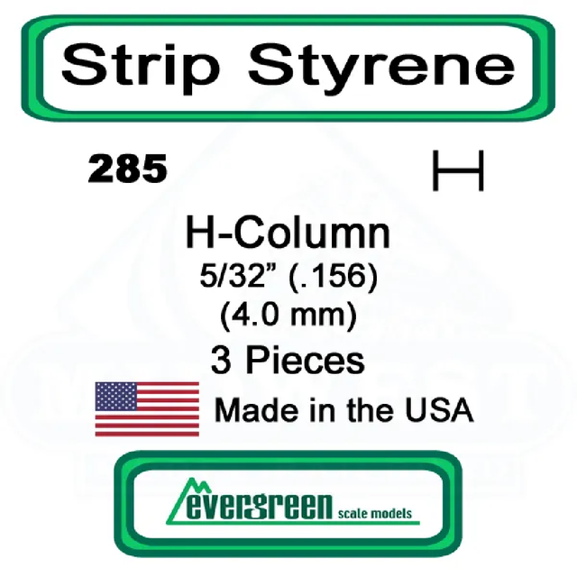 Evergreen Scale Models – H-Column Styrene – 5/32" (.156) (4.0mm) 3 Pieces #285