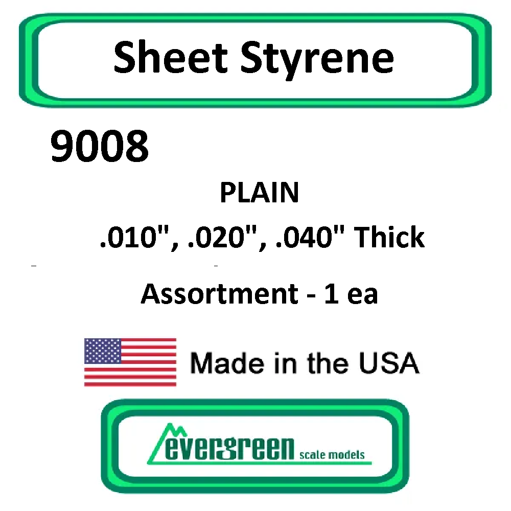Includes 3 sheets of white styrene 1 of each .010", .020", .040"
