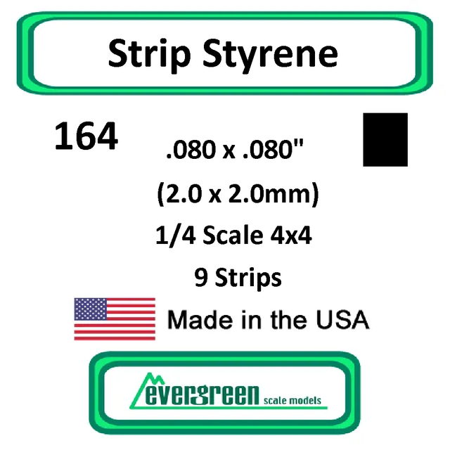 Includes 9 strips of Opaque White Square .080 x .080" (2.0 x 2.0mm) 1/4 Scale 4x4