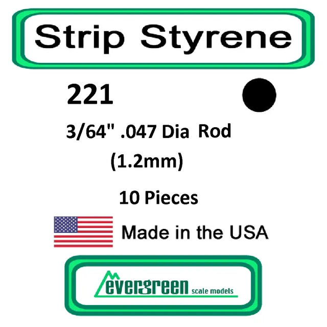 Evergreen Scale Models - Rod Styrene – 3/64" .047" (1.2mm) 10 Pieces #221