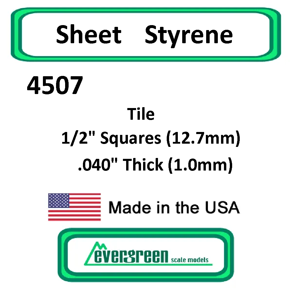 Evergreen Scale Models - Sheet Styrene – Tile 1/2" Squares (12.7mm) .040" Thick (1.0mm) #4507