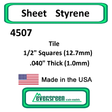 Includes 1 sheet of white styrene Tile 1/2" Squares (12.7mm) .040" Thick (1.0mm)