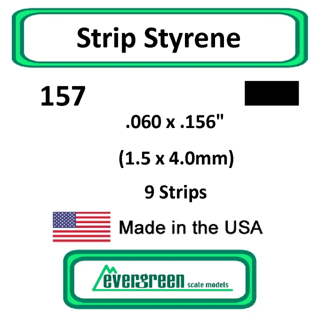 Evergreen Scale Models - Strip Styrene - Rectangle .060 x .156" (1.5 x 4.0mm) 9x Opaque White Polystyrene Strips #157