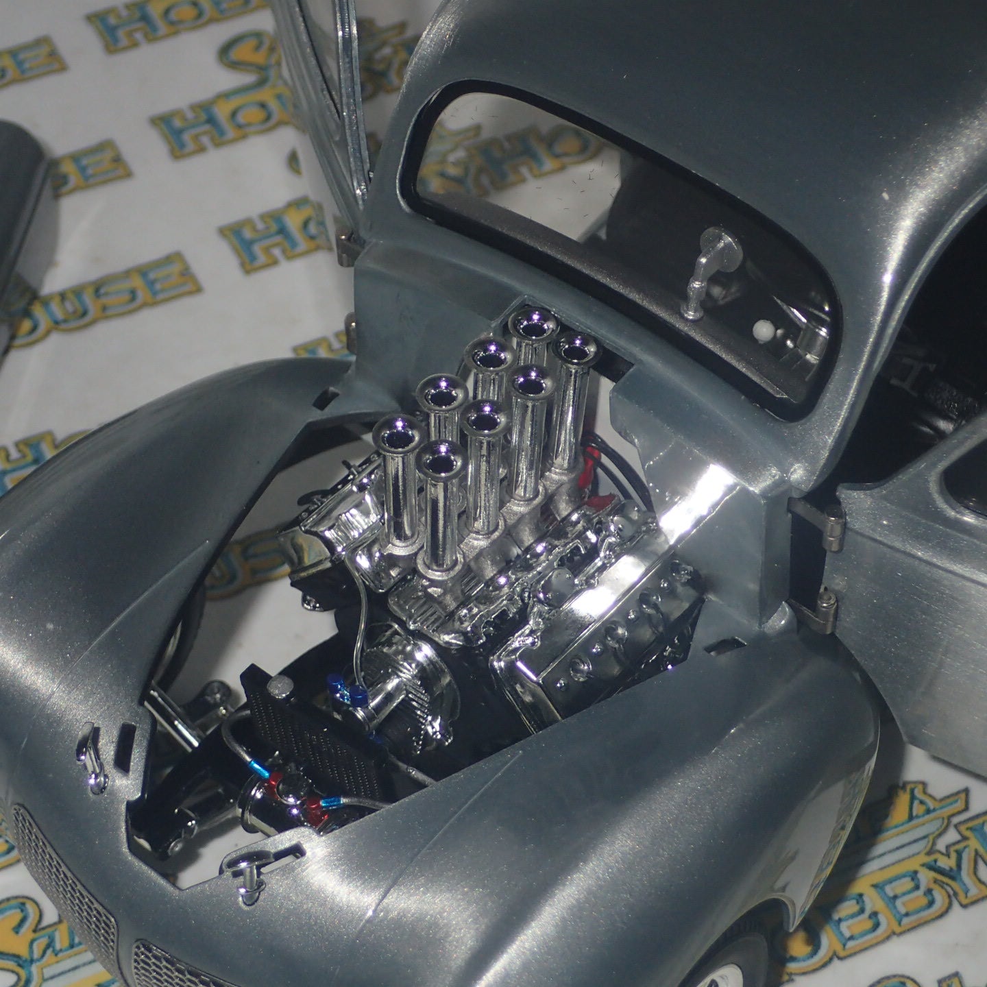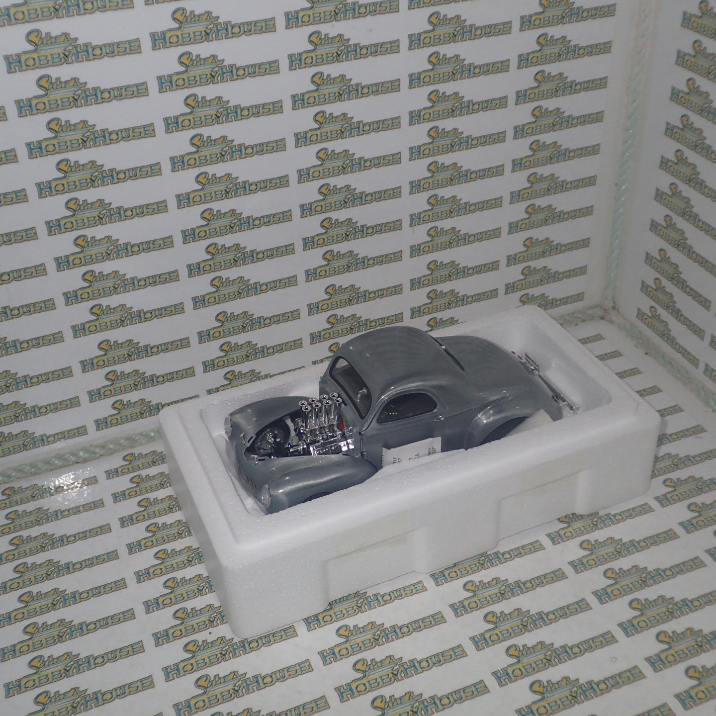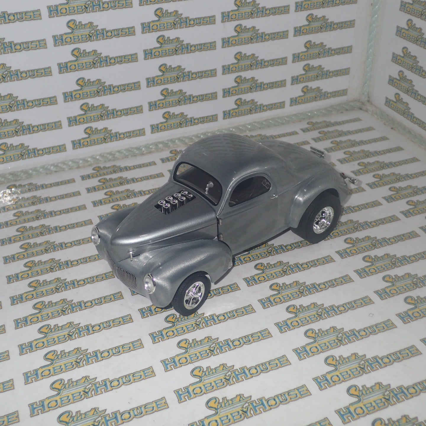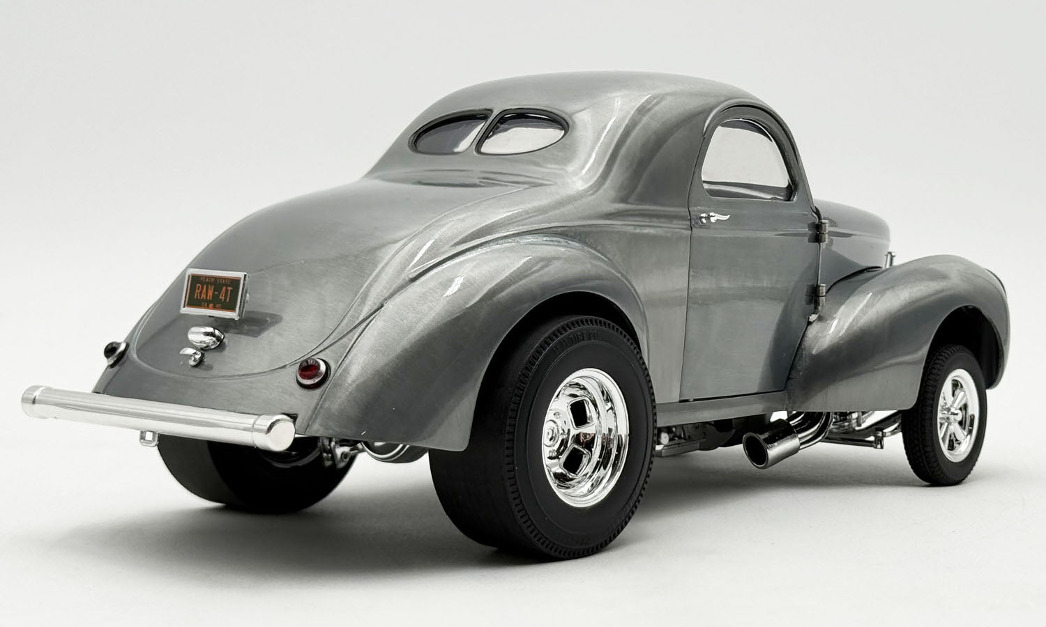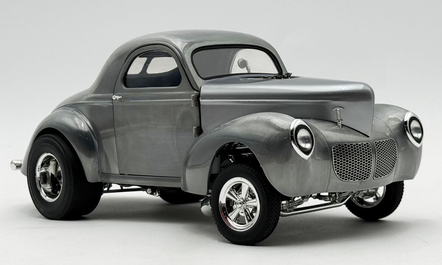 You've been asking for it for years, and now here it is!!! The Hammered Steel 1940 Gasser will be a centerpiece to your drag collection! This dynamic 1:18 1940 Gasser finished in beautiful, hammered steel has fully opening features, detailed interior and under carriage, real rubber tires, and more!