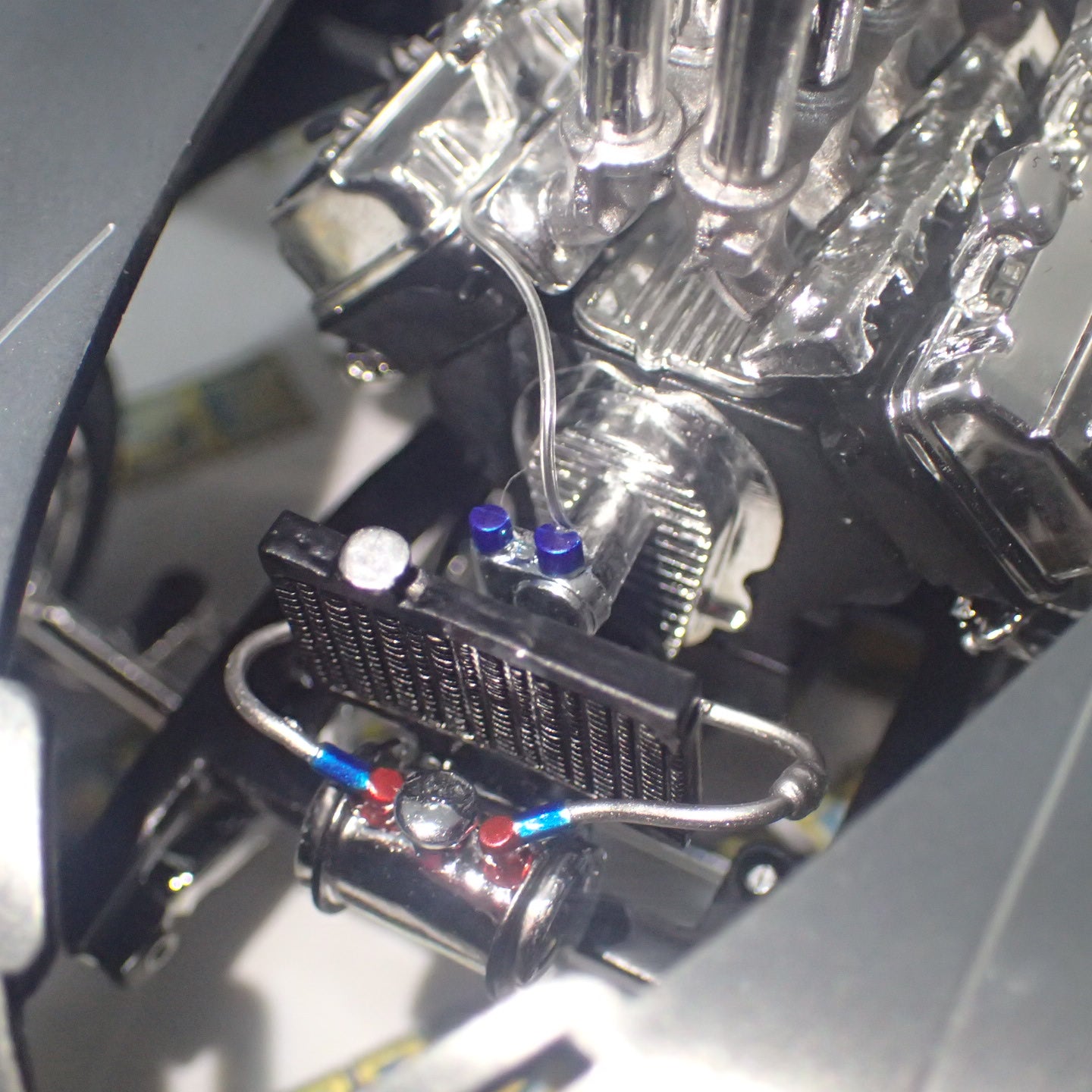 Detailed plumbed and wired engine