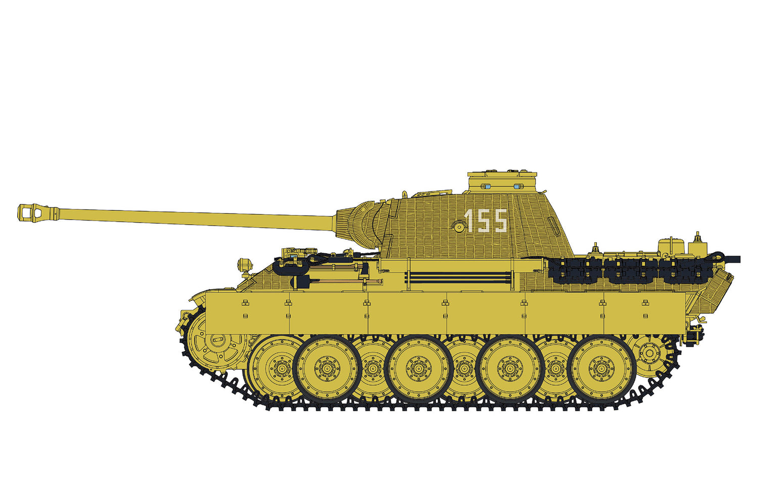 The external details of the Panther Ausf.D Medium Tank are perfectly replicated