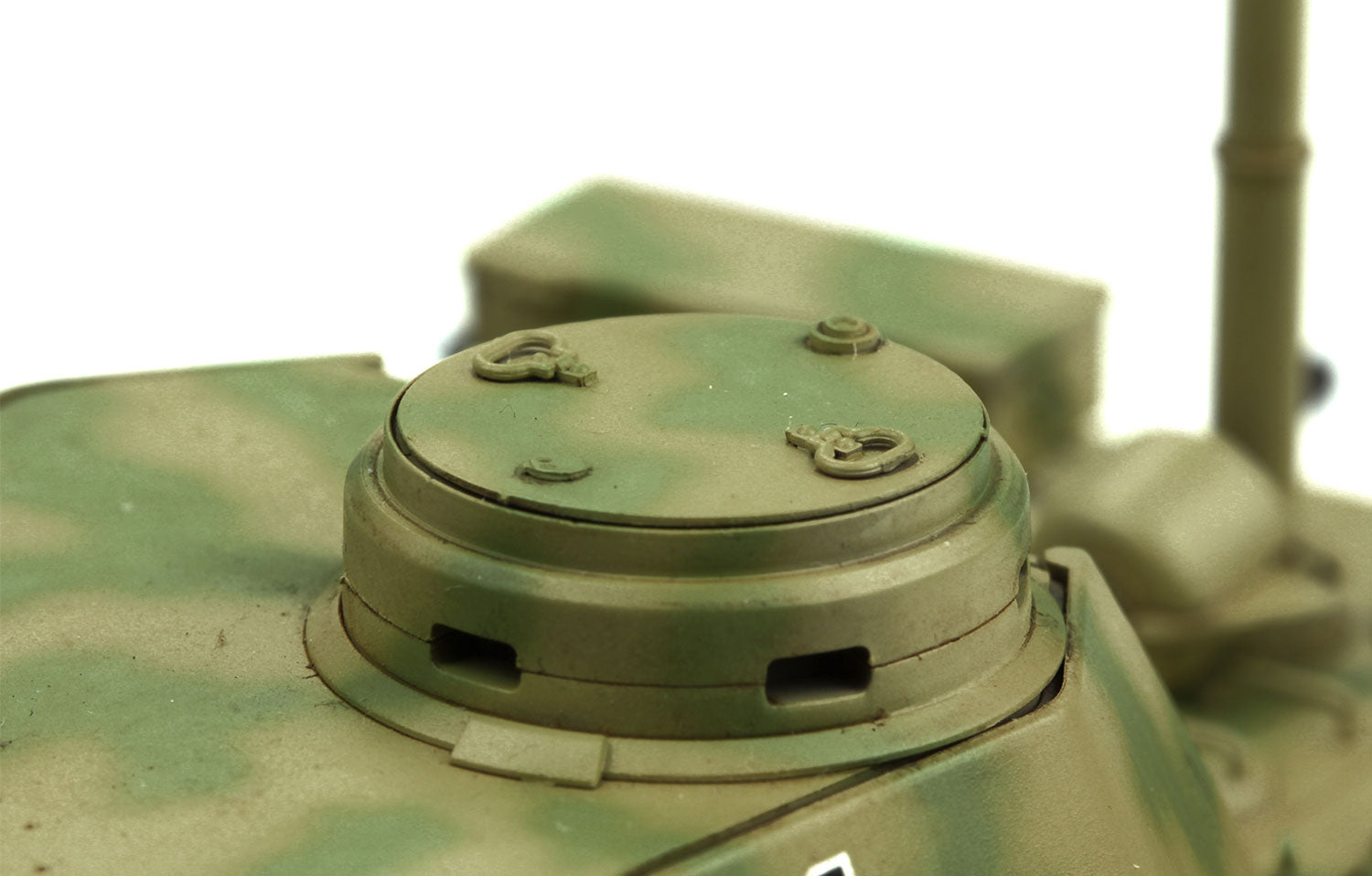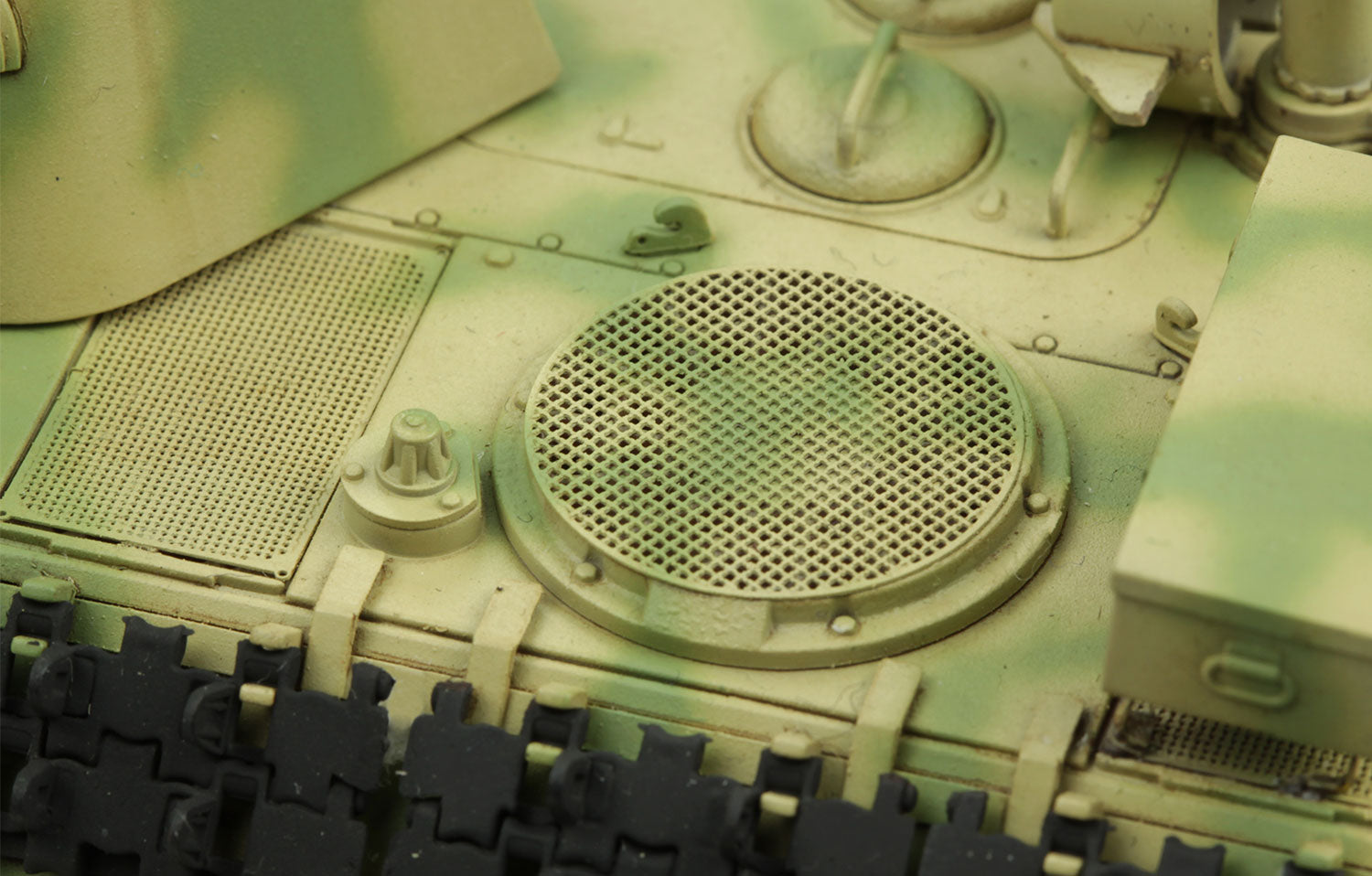 The main gun travel lock can be built in the open or closed position; PE Parts are provided for the Commander's Cupola.