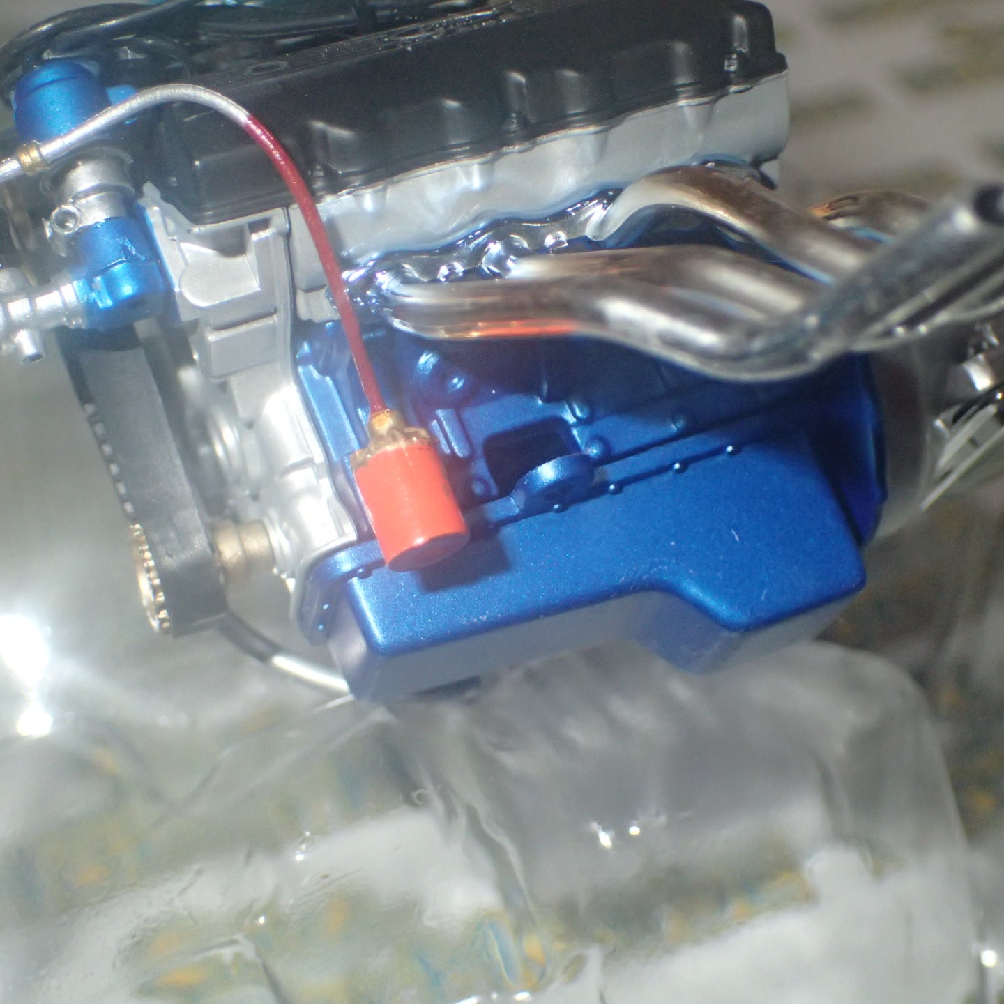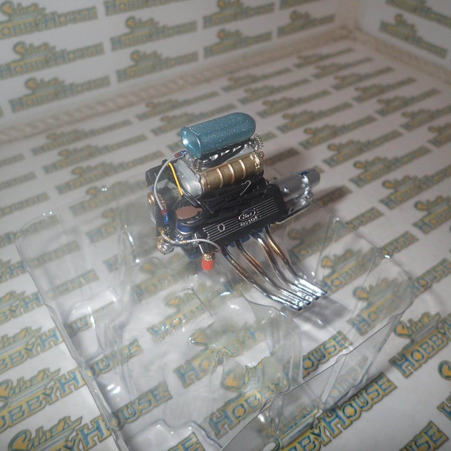 Here's the engine that motivated "Ohio" George's Malco Mustang to a record-setting 8.93 second-quarter mile at 162 mph. Add this fully wired and plumbed legend to your next build or display it on your desk for some high-octane motivation of your own. The 1:18 scale Ford SOHC 427 Engine diecast comes fitted with chrome headers and a Ford C-6 transmission, plus a one-of-a-kind manifold and intake scoop.