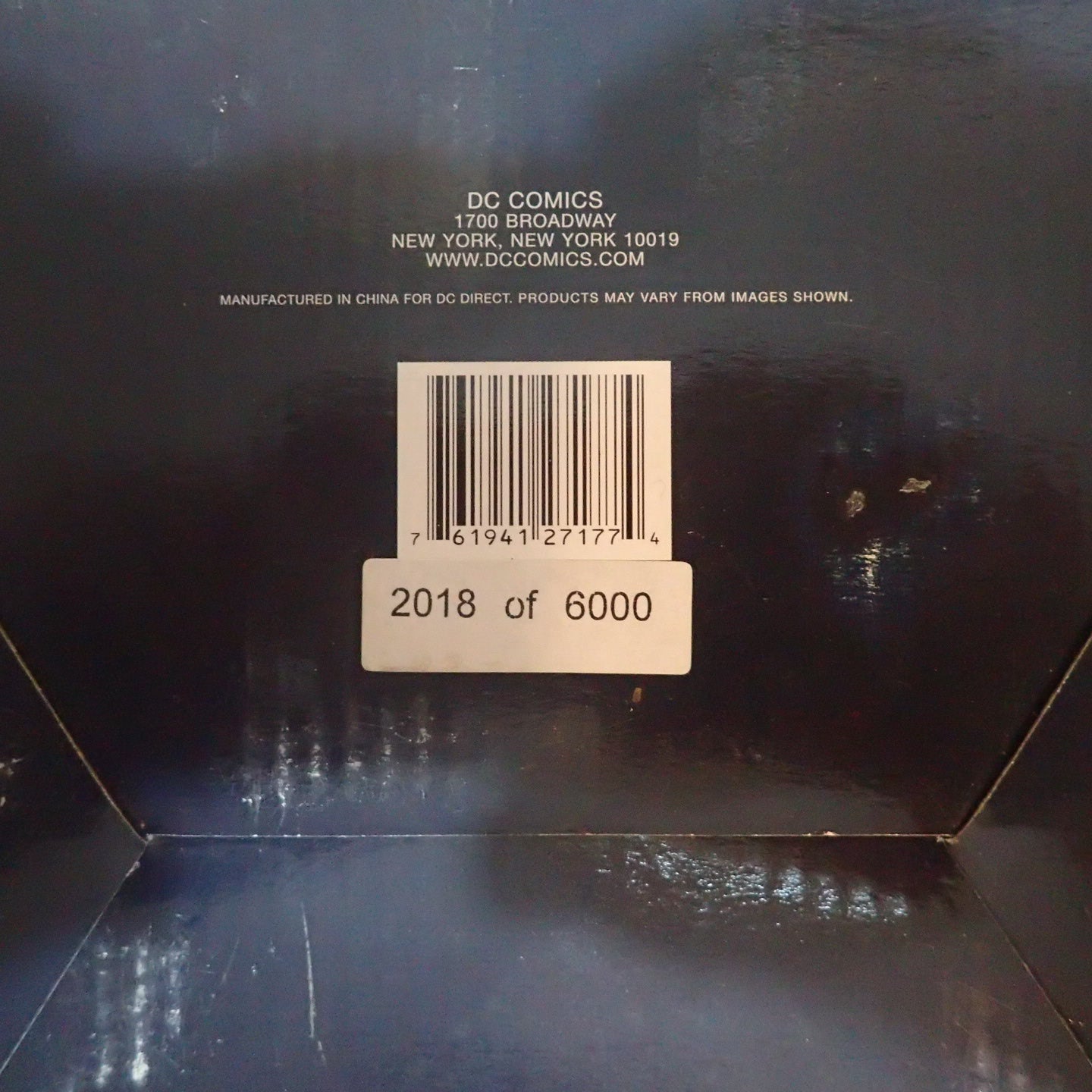 DC Direct The Dark Knight Batman Limited Edition Hand-Painted, Cold-Cast Porcelain Statue This item is new in its original box. It is a hand-painted, cold-cast porcelain statue. It was sculpted by Kolby Jukes. It stands approximately 10" tall x 8" wide x 8" deep. Limited edition out of 6000 made.