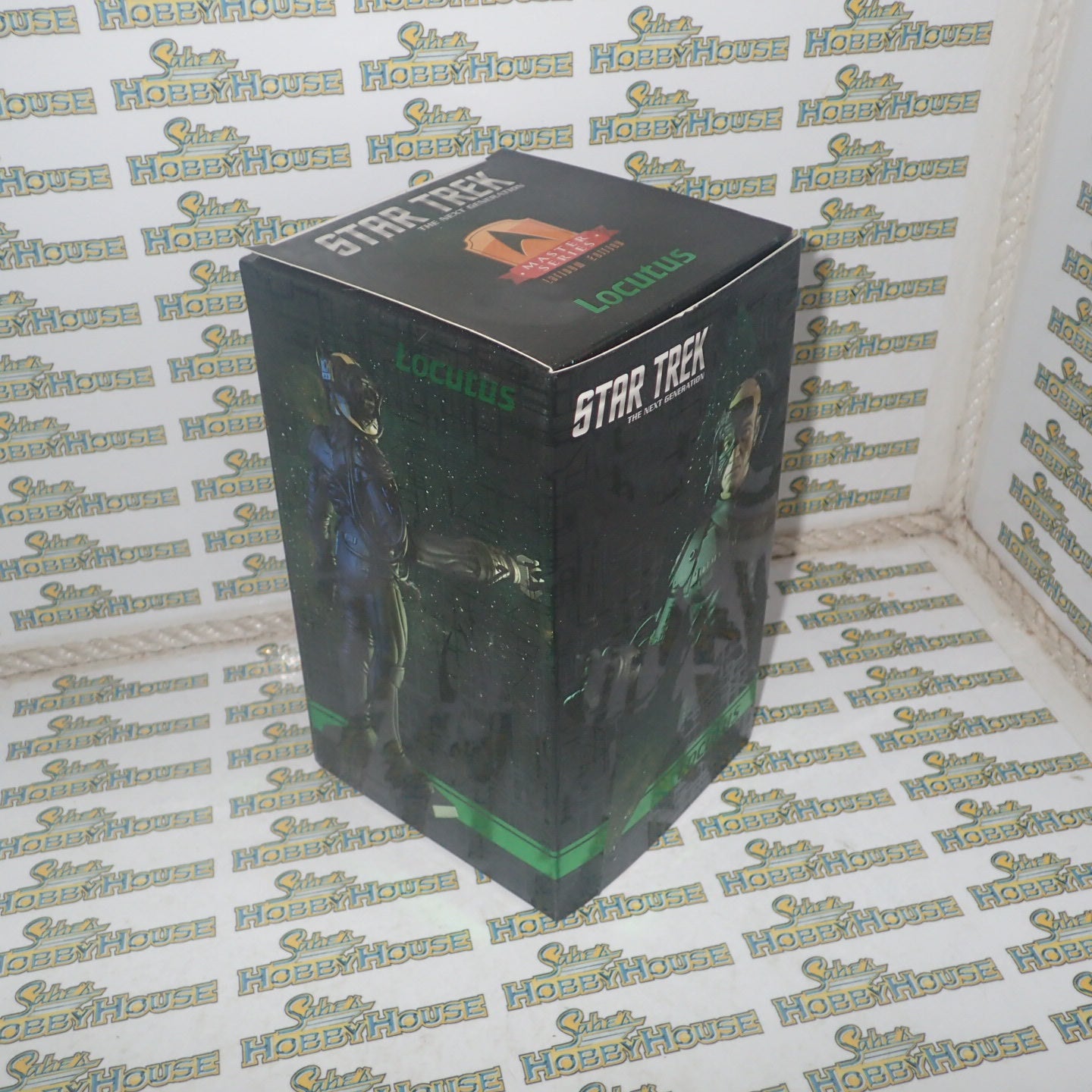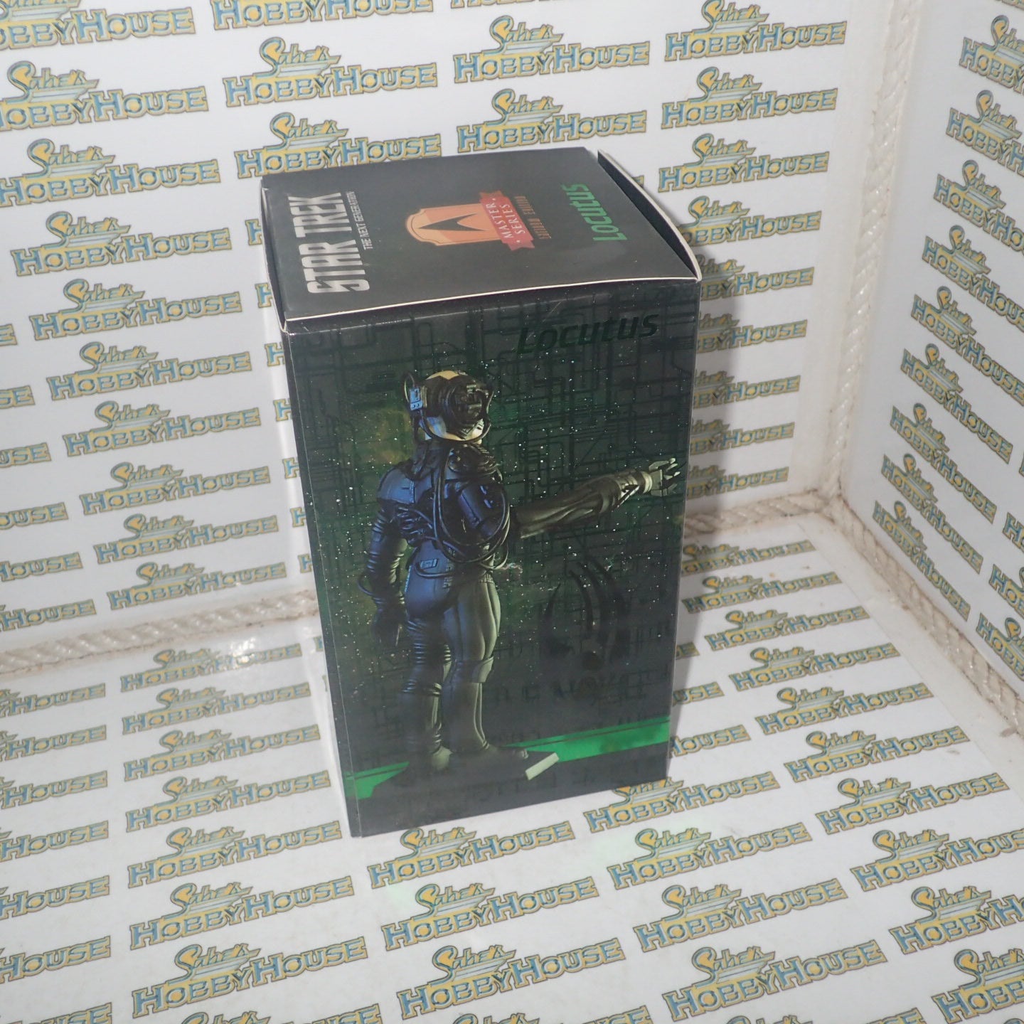 No one can resist this Mini Master figure of Locutus of Borg. The first of a series of Star Trek figures in QMx's new larger, more detailed "Latinum Edition", the 1:12 scale hand-painted statue stands approximately 6 inches tall and features the authentic likeness of Patrick Stewart as the transformed Locutus. It comes in a full color 5-panel box with a box cover and window display.