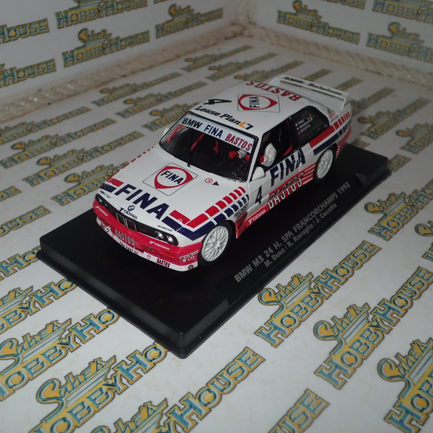 One of the team cars to A2023, this Bastos/Fina M3 was not so successful in the 1992 Spa 24hrs as it retired due to gearbox failure. It did however feature the star-studded touring car driver line-up of Marc Duez, Roberto Ravaglia and Johnny Ceccoto. The model is super detailed with full interior and come fitted with an in-line motor rated at 18k. A great addition for collectors of classic touring cars.