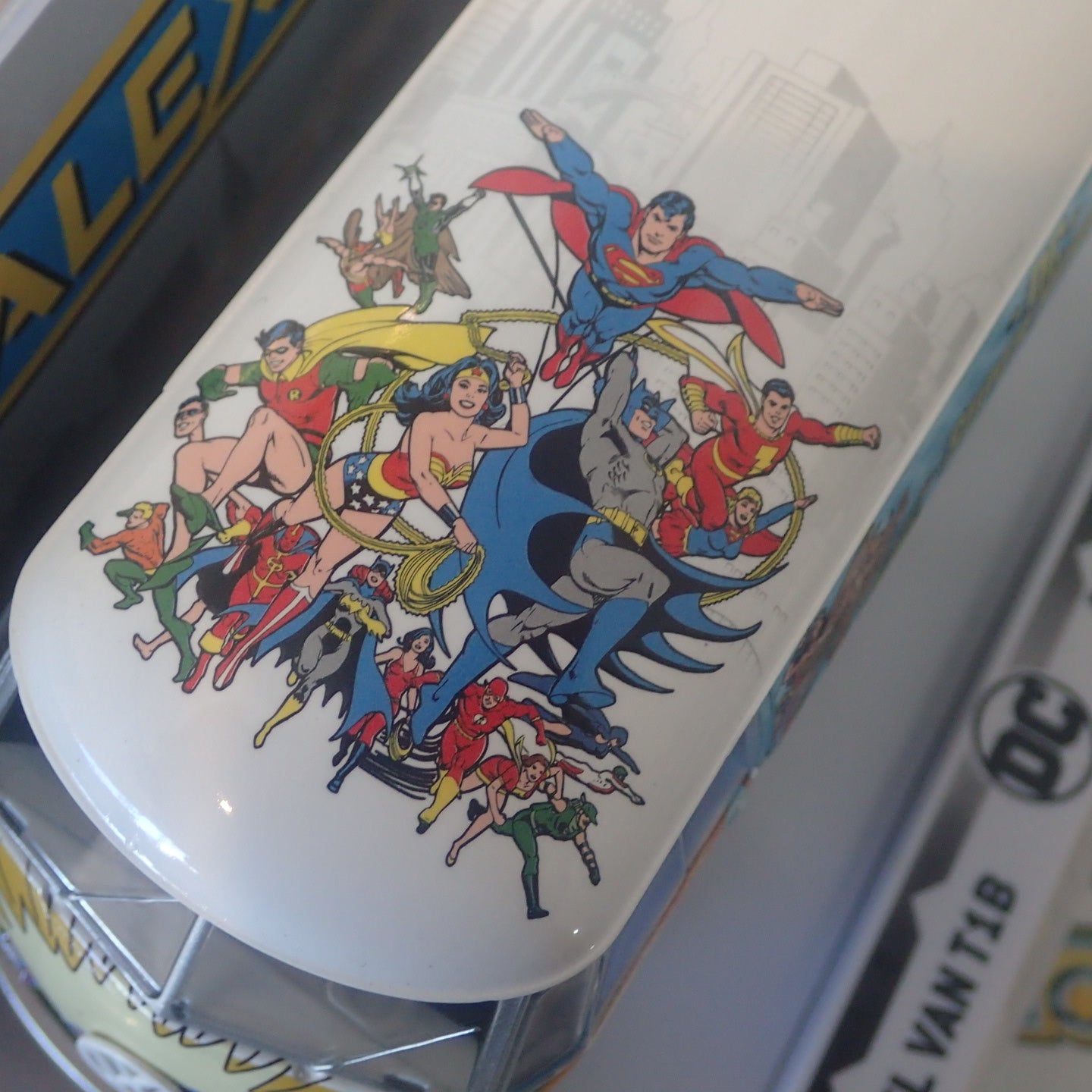DC Comics has published over 55,000 comic books since they were founded in 1934. This DC Comics themed VW Camper Van celebrates the characters created in their early catalogue of superheroes, including the cover of first published comic book: Action Comics #1, featuring Superman himself. With working lights (front and rear) and a unique and "high detail" livery, this VW Camper Van is sure to be popular with avid collectors of slot cars and DC Fans alike.