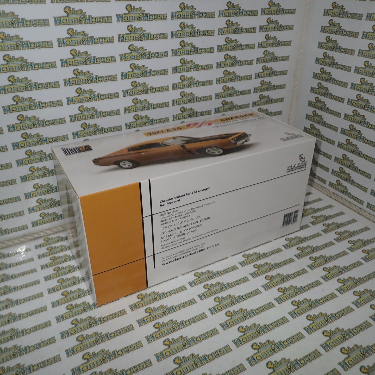 Classic Carlectables 18524 - 1:18 Chrysler VH Valiant E38 R/T Charger Hot Mustard "Small Tank" Die-cast Replica