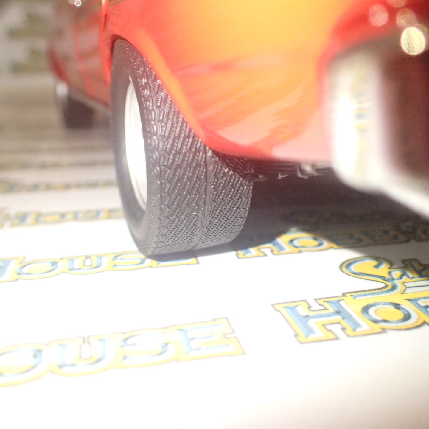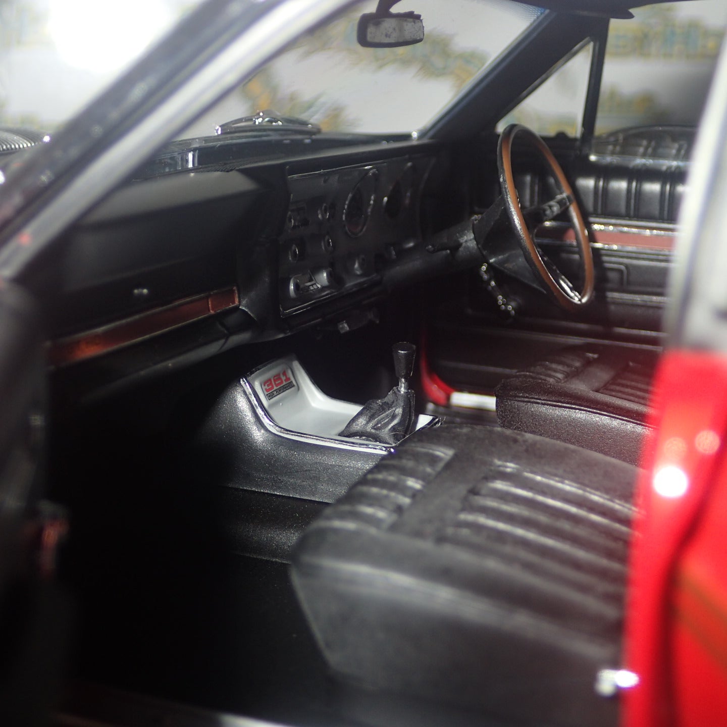 The GT-HO is a true muscle car, the fastest four door sedan in the world at the time. Converting the power from the 5.8L Cleveland V8, was difficult with the standard tyres, Upgrading to something more 'suitable' for the job was essential. This model has 12-slot rims, a favourite of the period, paired with the fattest tyres we could fit underneath the guards. The ultimate model from the time when rubber and cubic inches were king.