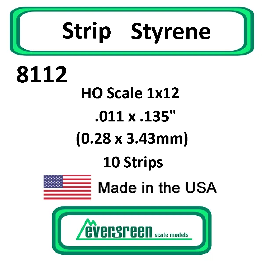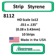 Includes 10 strips of white styrene HO Scale 2x12 .011 x.135" (0.28 x 3.43mm)