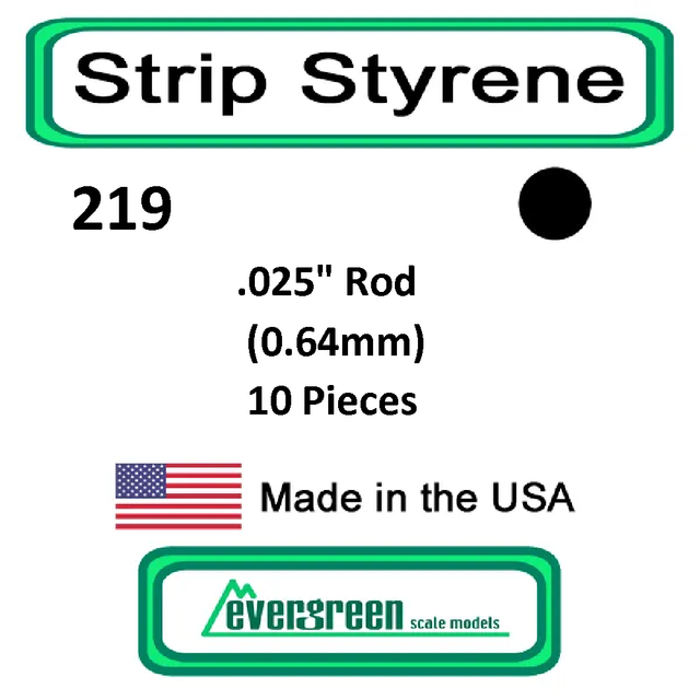 Evergreen Scale Models - Rod Styrene – .025" (0.64mm) 10 Pieces #219
