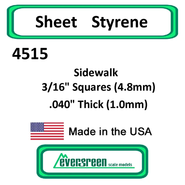 Includes 1 sheet of white styrene Sidewalk 3/16" Squares (4.8mm) .040" Thick (1.0mm)