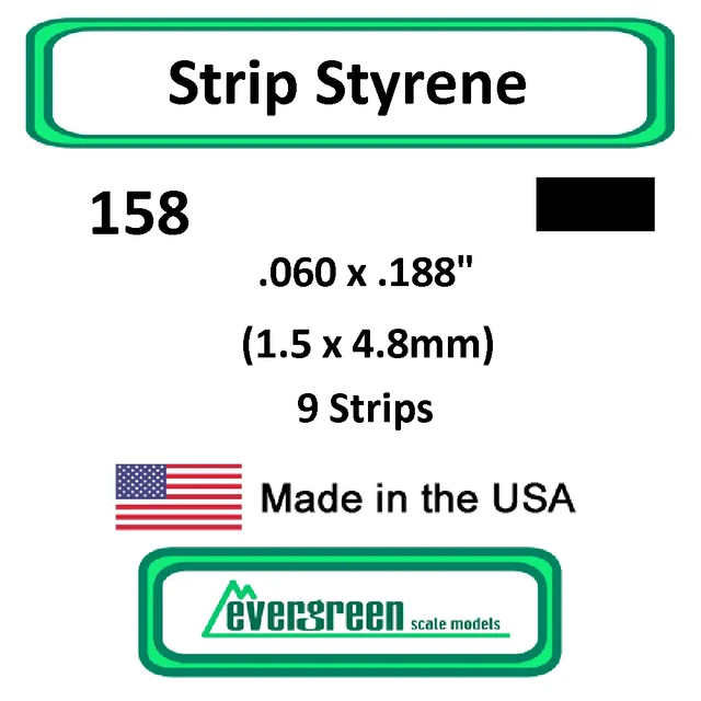 Evergreen Scale Models - Strip Styrene - Rectangle .060 x .188" (1.5 x4.8mm) 9x Opaque White Polystyrene Strips #158