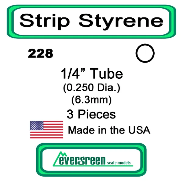 Evergreen Scale Models - Tube Styrene – 1/4" .250 Dia. (6.3mm) 3 Pieces #228