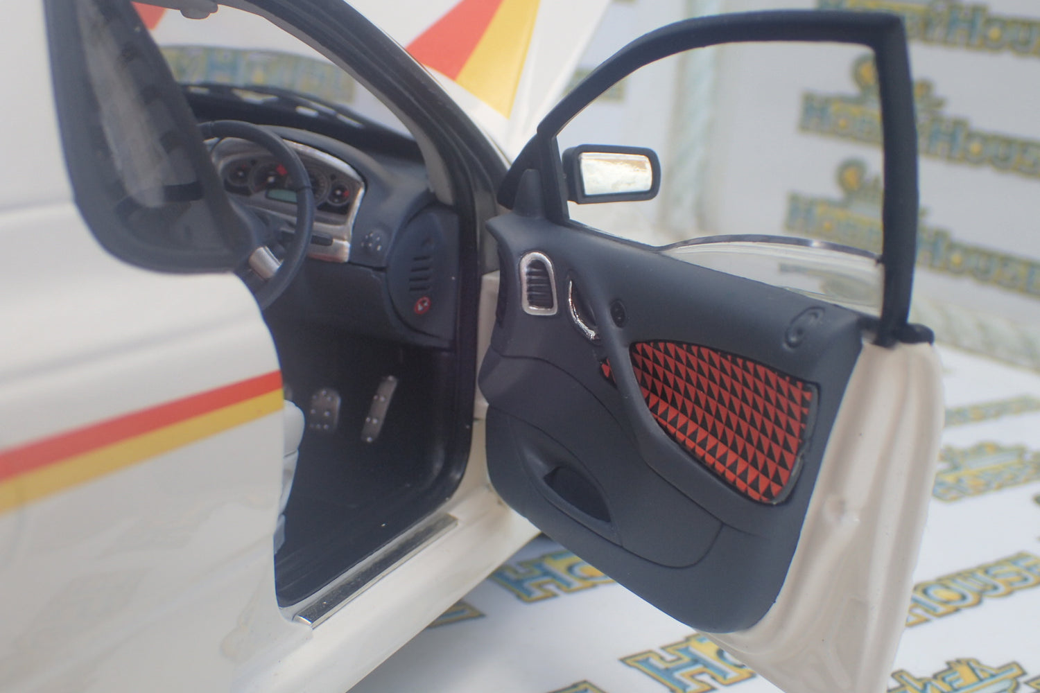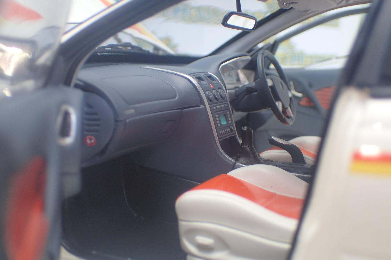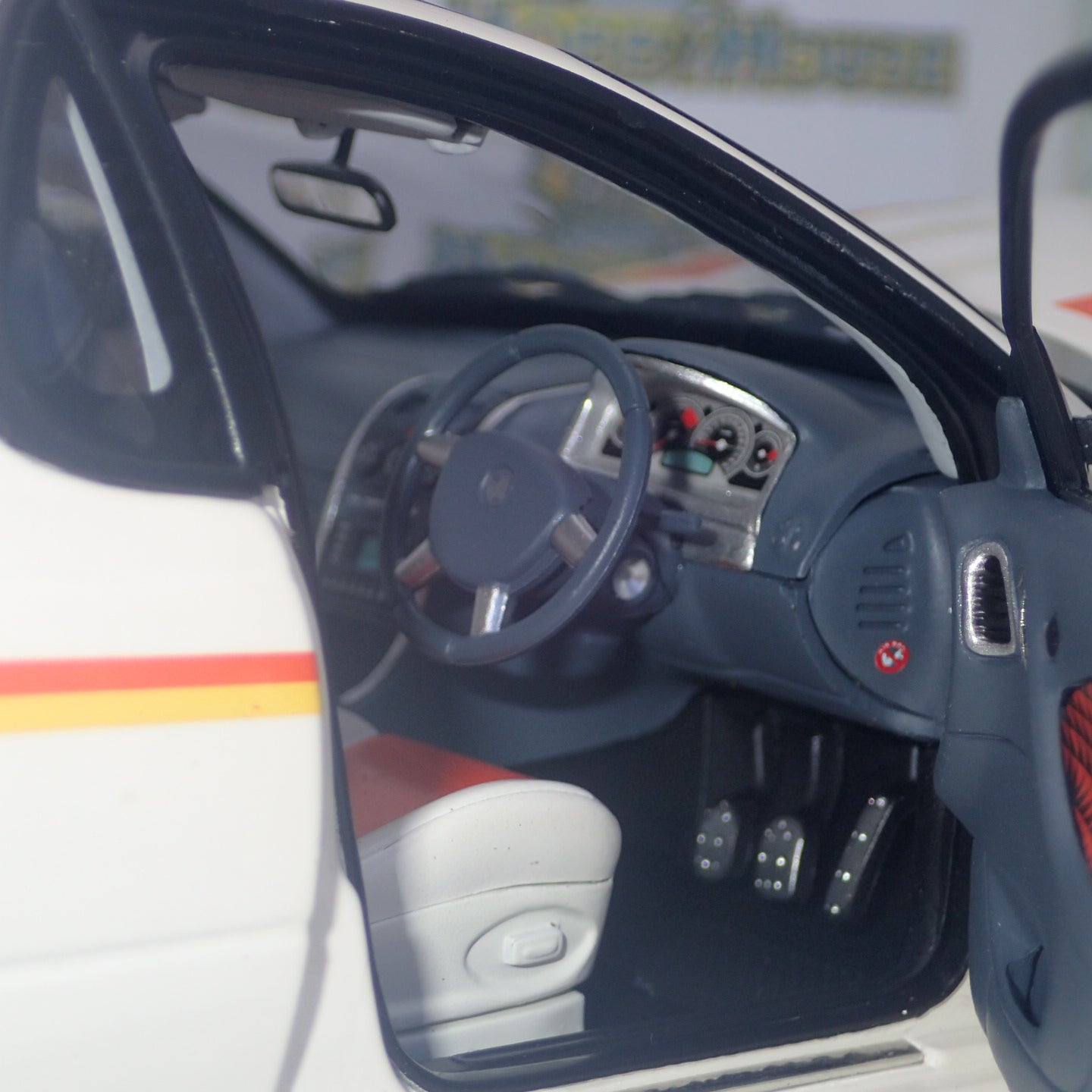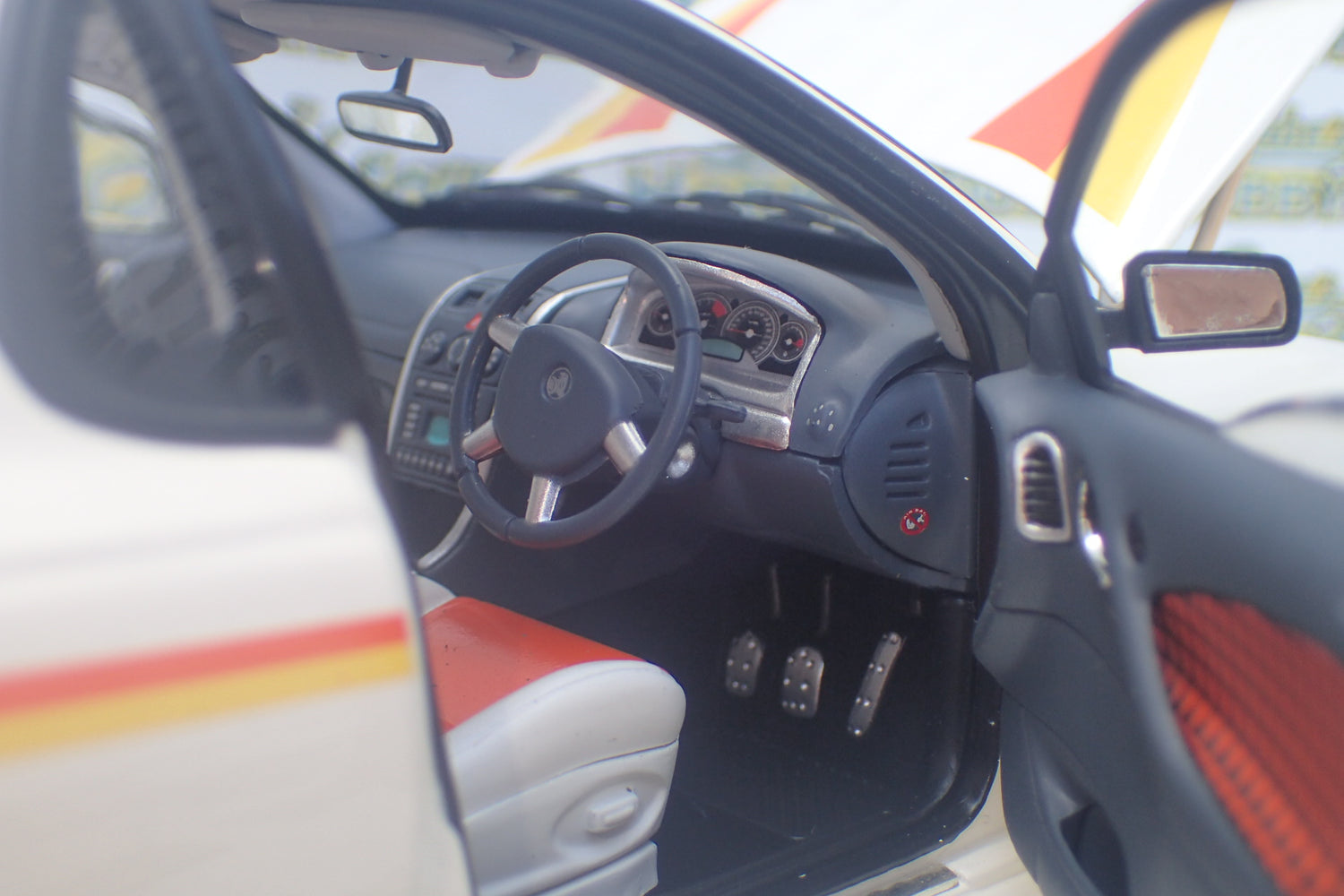 The interior is very realistic and has customized details like door and seat trims and unique dash vinyl color.