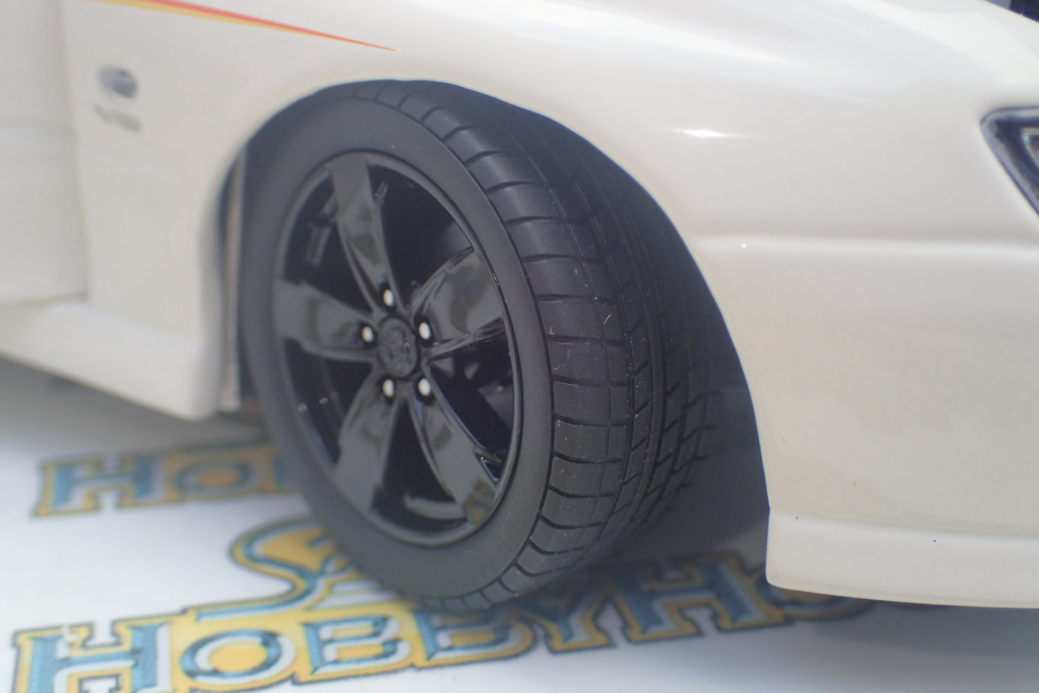 The Black 5 spoke factory rims and lowered suspension contribute to the aggressive look of the model.