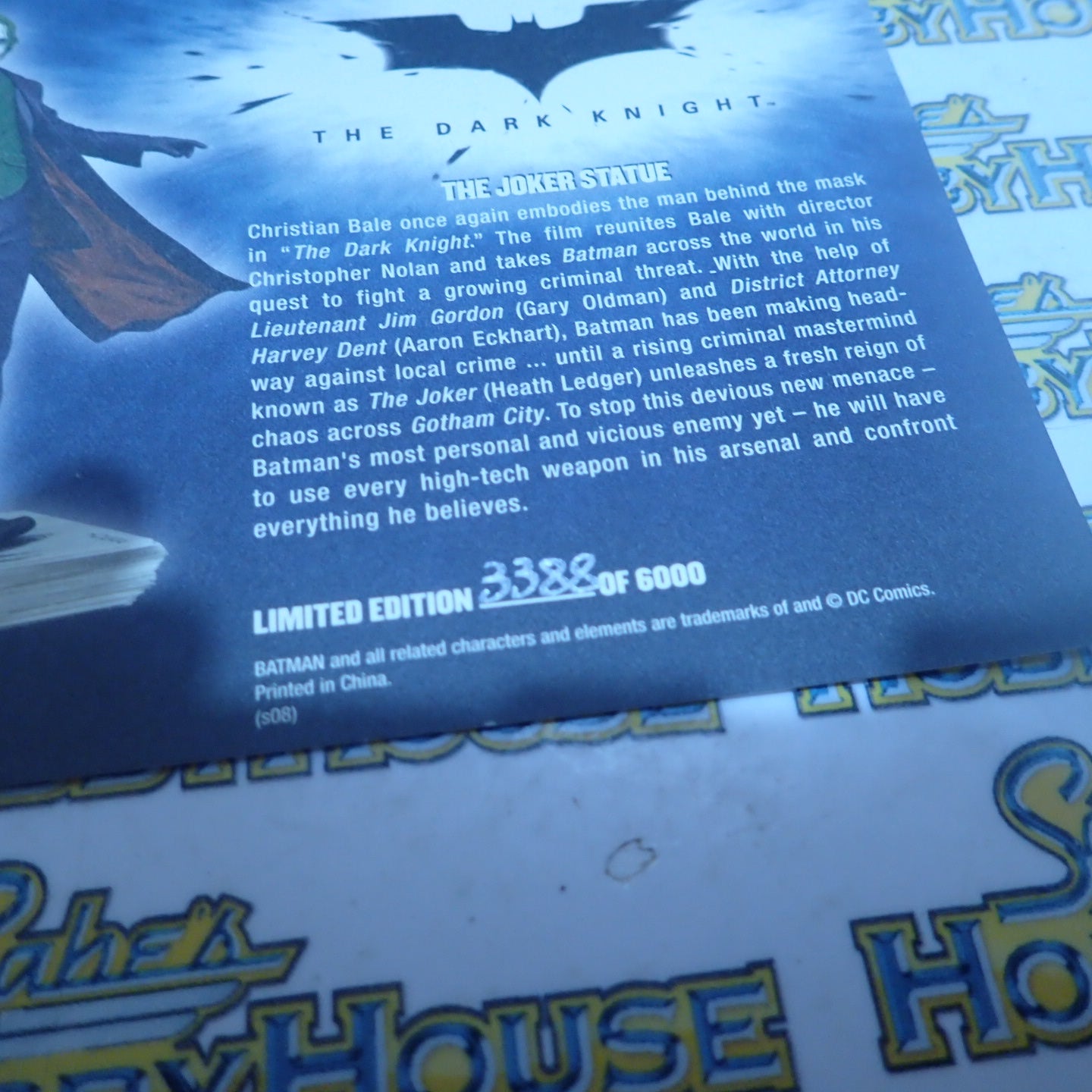 DC Direct the Dark Knight Batman Limited Edition Hand-Painted, Cold-Cast Porcelain Statue This item is new in its original box. It is a hand-painted, cold-cast porcelain statue. It was sculpted by Kolby Jukes. It stands approximately 10" tall x 8" wide x 8" deep. Limited edition out of 6000 made.