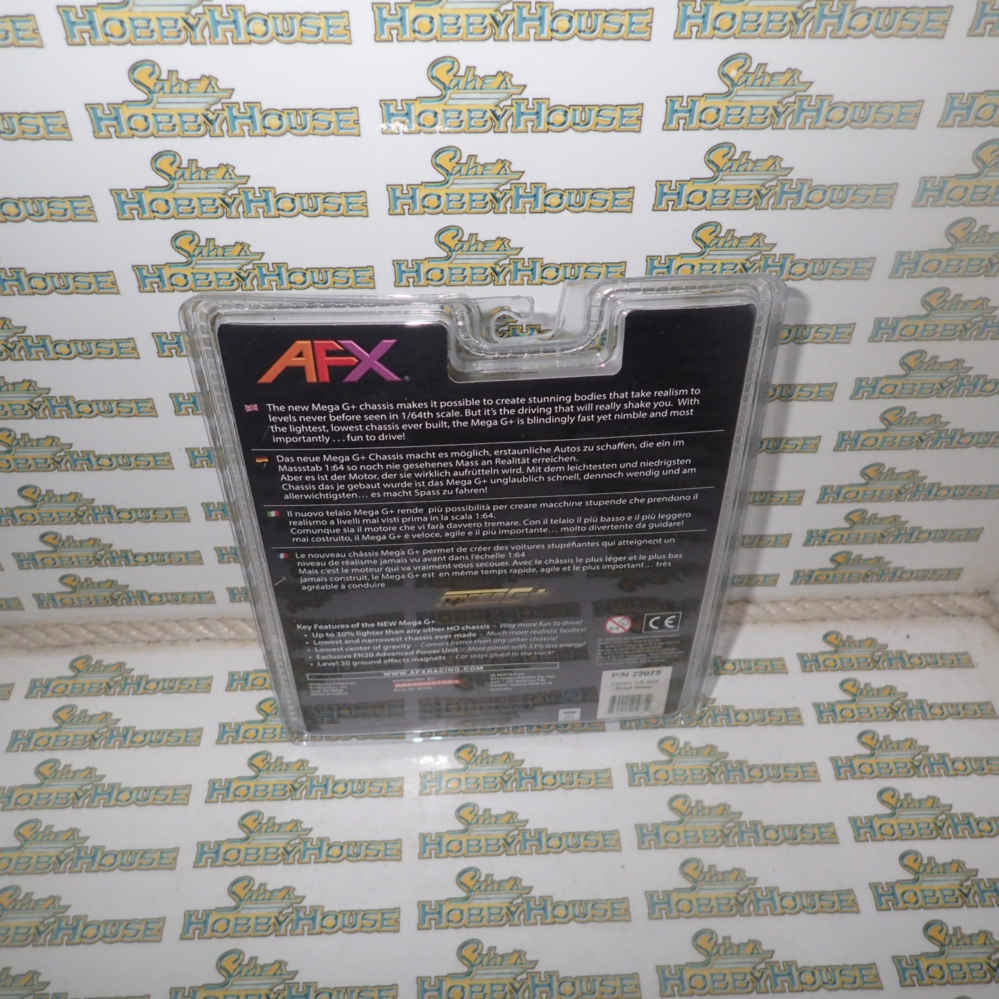 CHASSIS: Mega G+ LONG Wheelbase Chassis (1.7″) Mega G+ Chassis This chassis doesn’t just go faster or handle better than the competition. It wasn’t just built with the ultra-low, narrow dimensions of the original Mega G to continue the reign of the most realistic HO cars on earth. The Mega G+ Chassis is smoother, more consistent, and more intuitive than any car we’ve ever built. Mega G+ Race System Get the feel of driving a real car with a whole new system…Made up of the Mega G+ Chassis, AFX120 Controllers and Exclusive Tri-Power Pack, the Mega G+ Race System is the perfect balance of grip and speed. With decades of slot car innovation, this is the best out of the box slot car system you can buy.Product Id: 22075